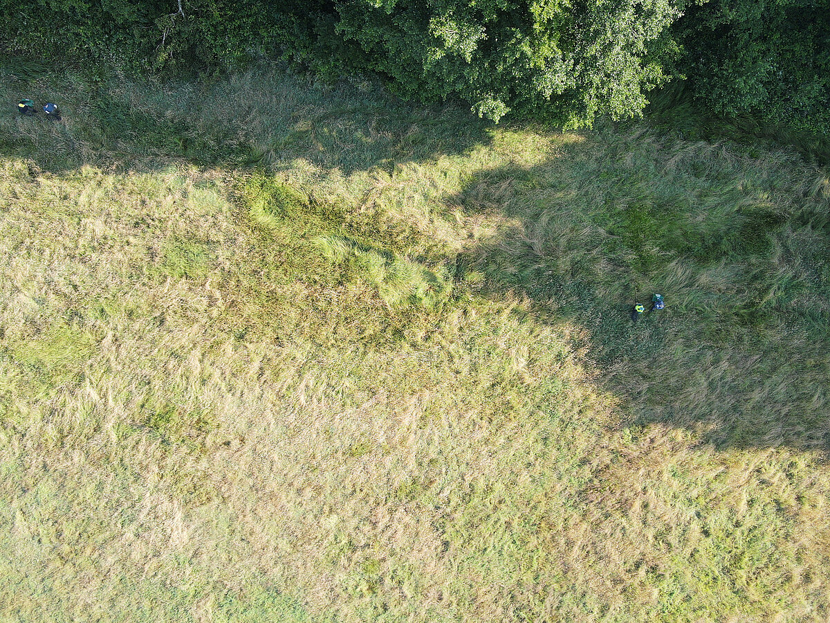 Auf den Bildern kann man sehen, wie hoch das Gras teilweise auf den Wiesen steht. Bei einer Suche “zu Fuß” ohne Drohnenbild würde man nur mit viel Glück ein Kitz entdecken.