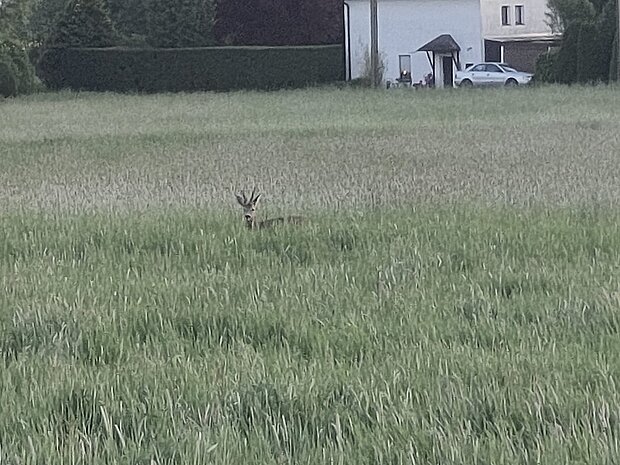 Im Frühsommer 2022 las ich zufällig einen Aufruf in einem Nachbarschaftsnetzwerk, dass für das Wochenende Helfer und Helferinnen für die Rehkitzsuche in Feldern unseres Nachbarortes gesucht werden. Da mein Partner Ingo und ich gerne und viel in der Natur unterwegs sind, meldete ich uns an und am Sonntagmorgen gegen 8 Uhr trafen wir bei angenehm kühlen Temperaturen am Treffpunkt ein. Ich konnte nicht ahnen, dass dies einer der anstrengendsten Tage meiner bisherigen Outdoor-Aktivitäten werden sollte.